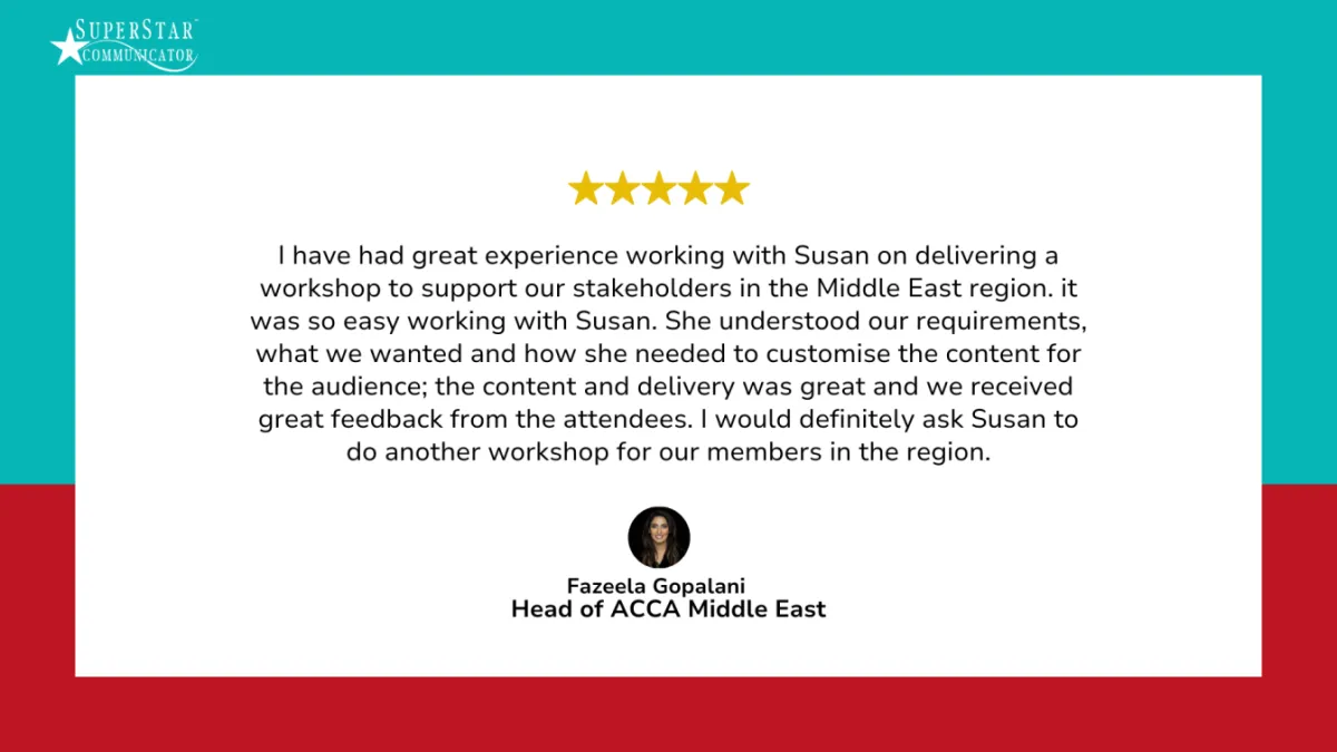 I'm Susan Heaton-Wright, a former prize-winning opera singer turned international speaker and founder of SuperStar Communicator™. I deliver dynamic masterclasses and workshops that empower professionals to speak with clarity, confidence, and impact—whether they’re leading meetings, pitching ideas, or presenting on stage. I work with individuals and organisations to create harmony in the workplace through purposeful communication.